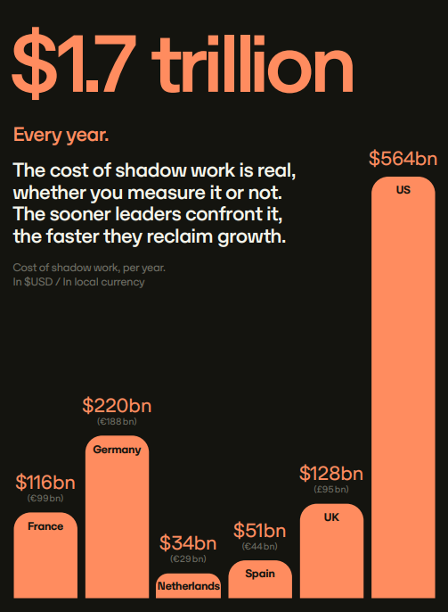 ‘Shadow work’ – the hidden manual tasks that are outside the remit of people’s jobs, like filing expenses, chasing approvals, booking travel and reconciling invoices – is costing companies $1.7 trillion every year.