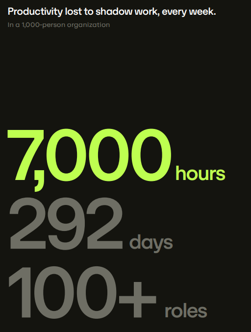 Not the mention that each shadow work task adds 11 minutes of distraction as employees re-focus on their real work.