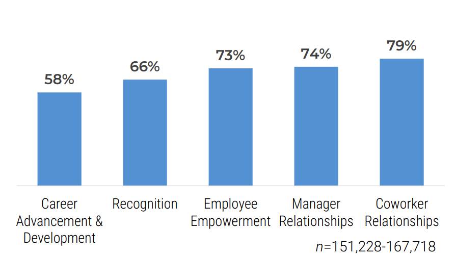 This is good progress, but McLean noted that there is more for managers to do to support employees with their career advancement and development. This was the bottom job-related driver of engagement in McLean’s study (58%).